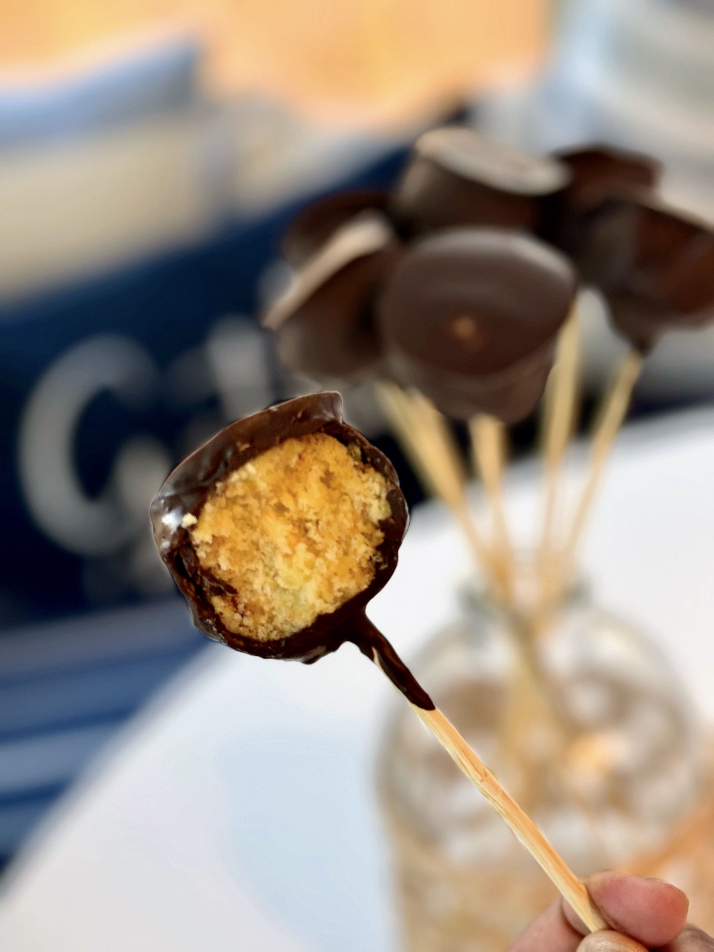 Creamy fruity center with a thick chocolate coating. If you enjoy fruit dipped in chocolate, this is the cake pop for you. Recipe makes 43 pops and is perfect for large gatherings.