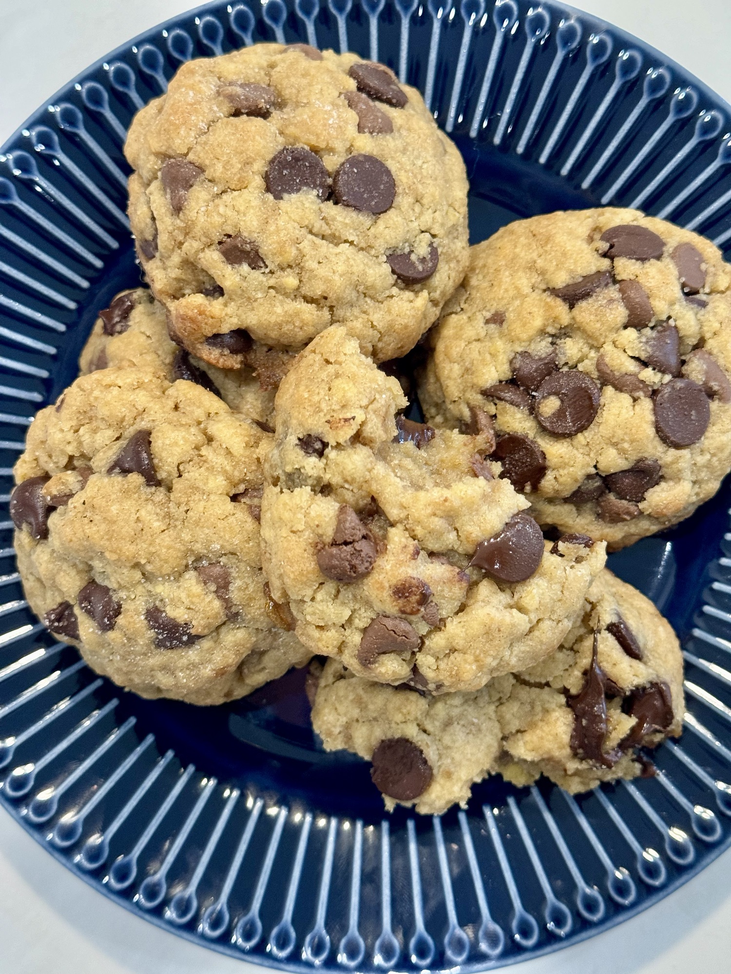 After many many attempts, fails, and happy accidents, I’ve curated my perfect chocolate chip cookie recipe. It features all of my favorite charms of this delectable treat including rich toasty caramelized flavor from the brown butter, crunchy on the outside with a chewy gooey inside, thick and chunky with 1/4 cup of dough in each cookie, loaded with milk and dark chocolate chips, and topped with flakey salt for the perfect balance. This cookie has my perfect stamp of approval and is sure to be a crowd pleaser.
